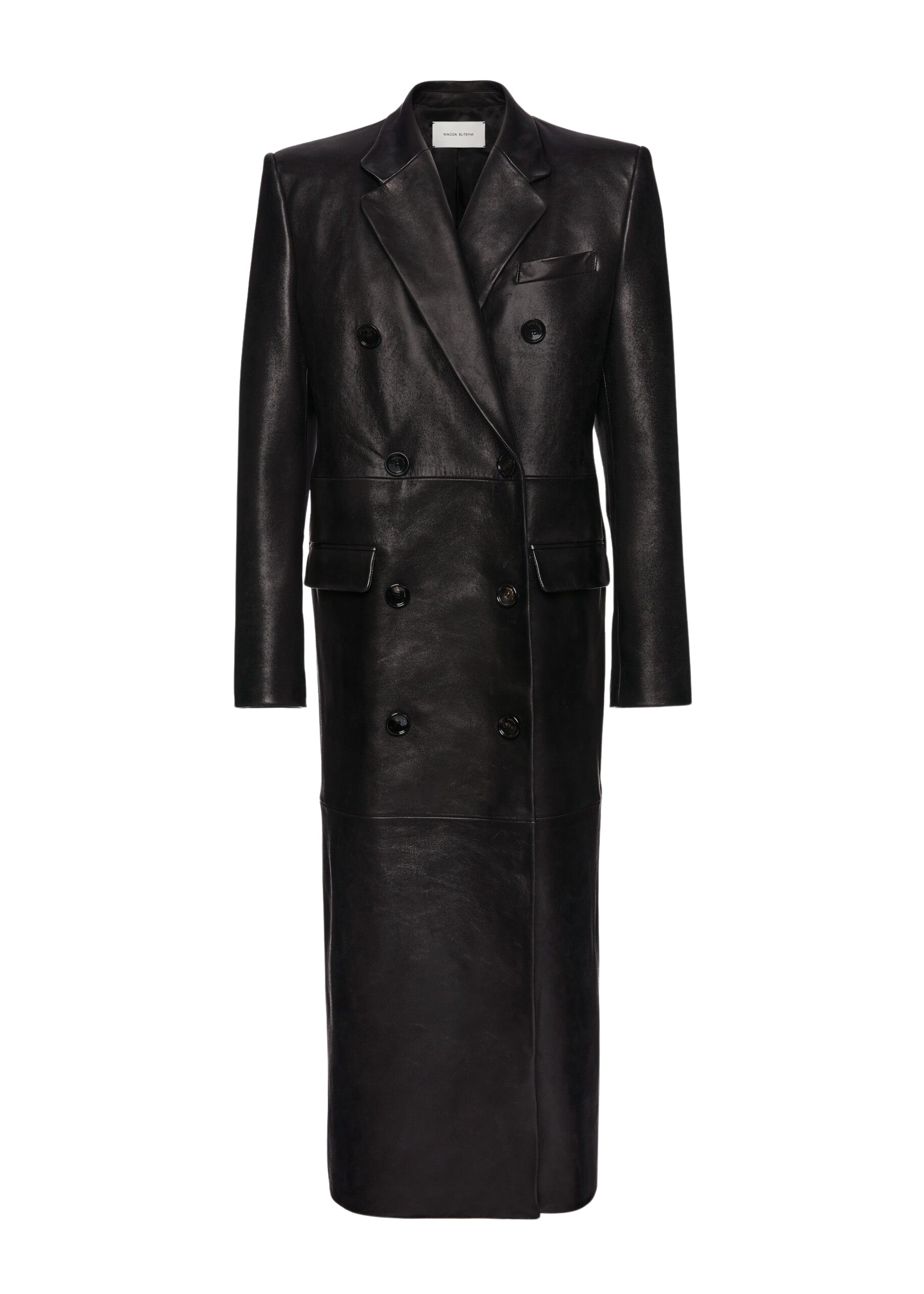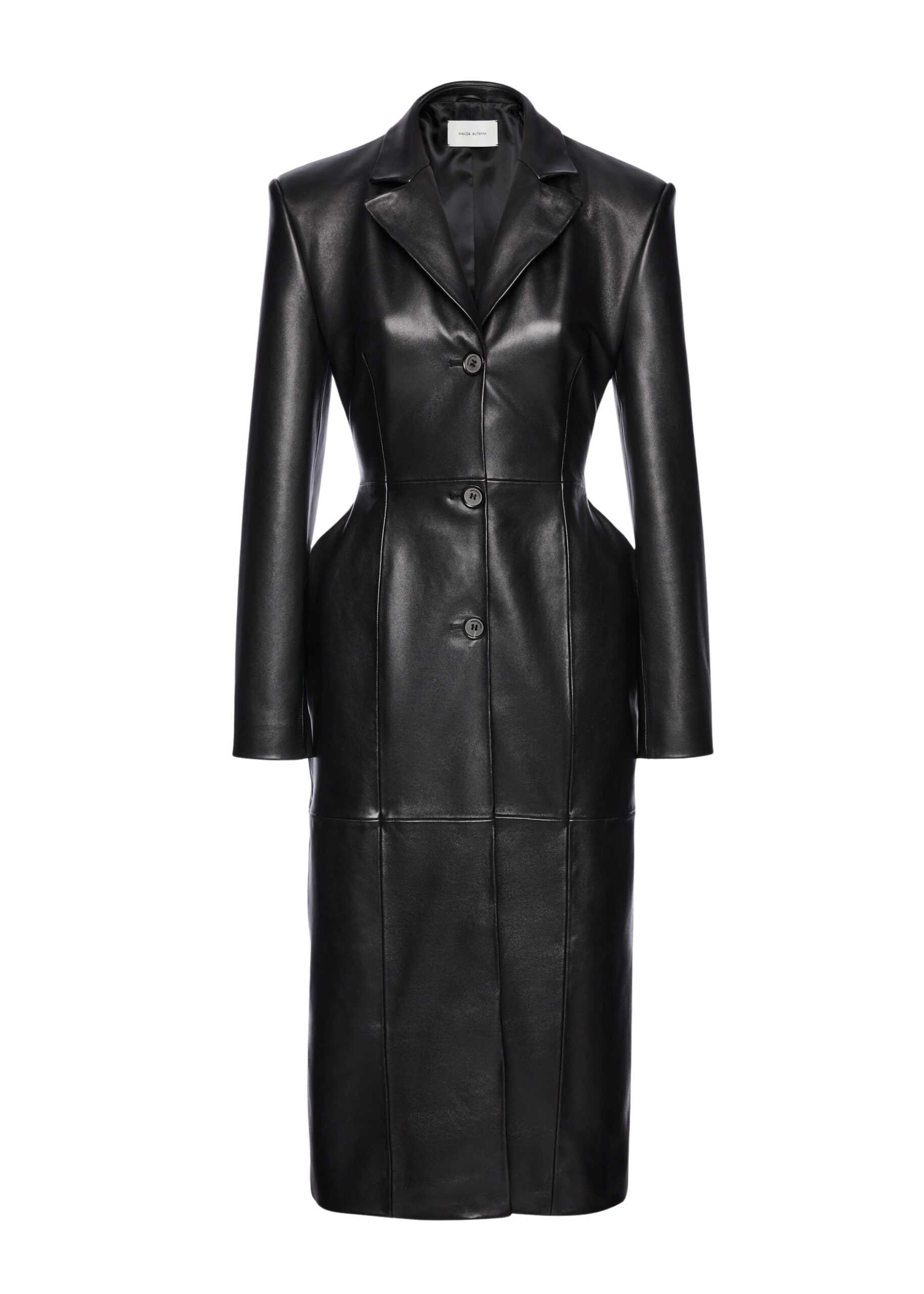 Long leather tailored coat in black