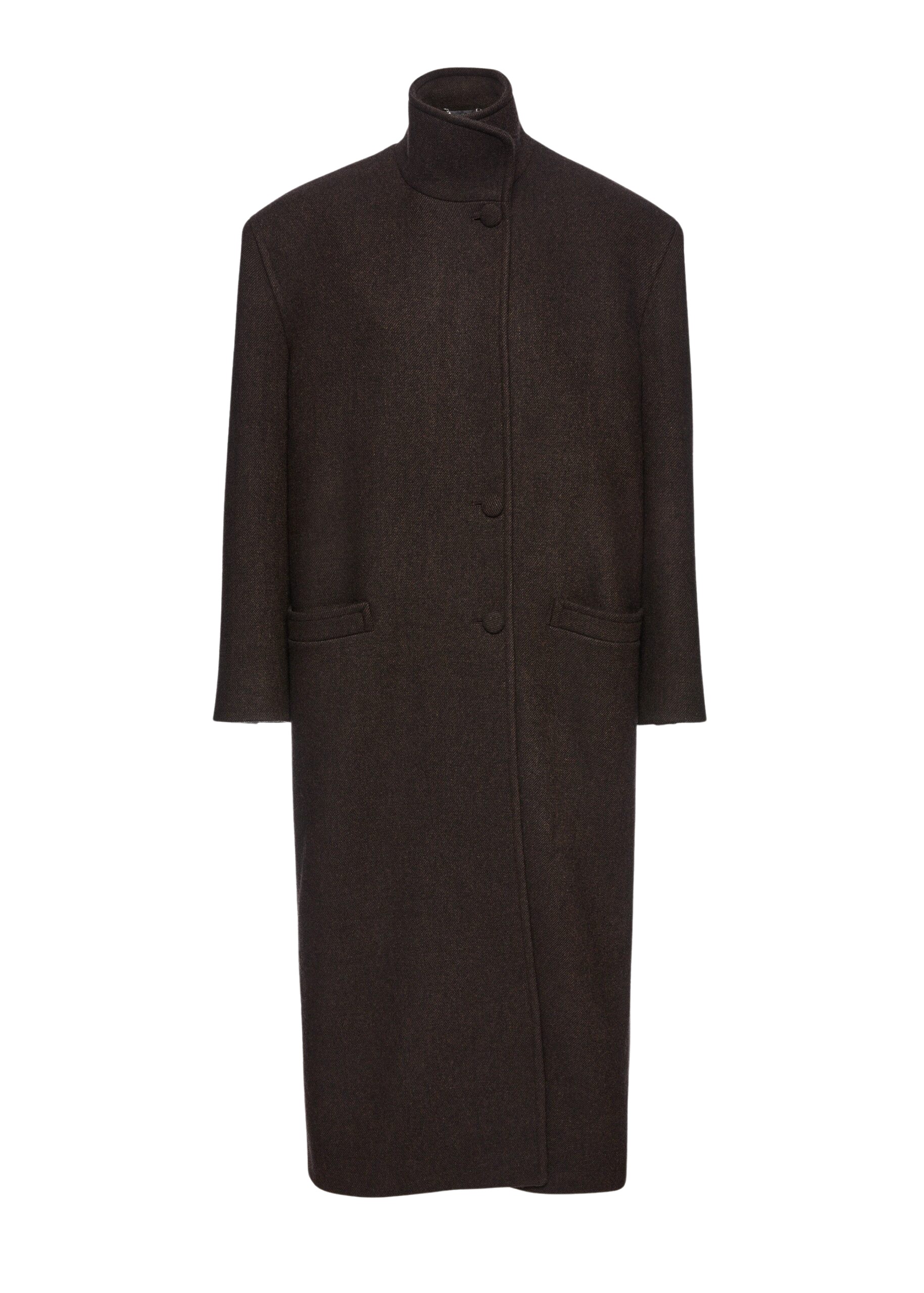 Oversize cashmere coat with stand collar in brown
