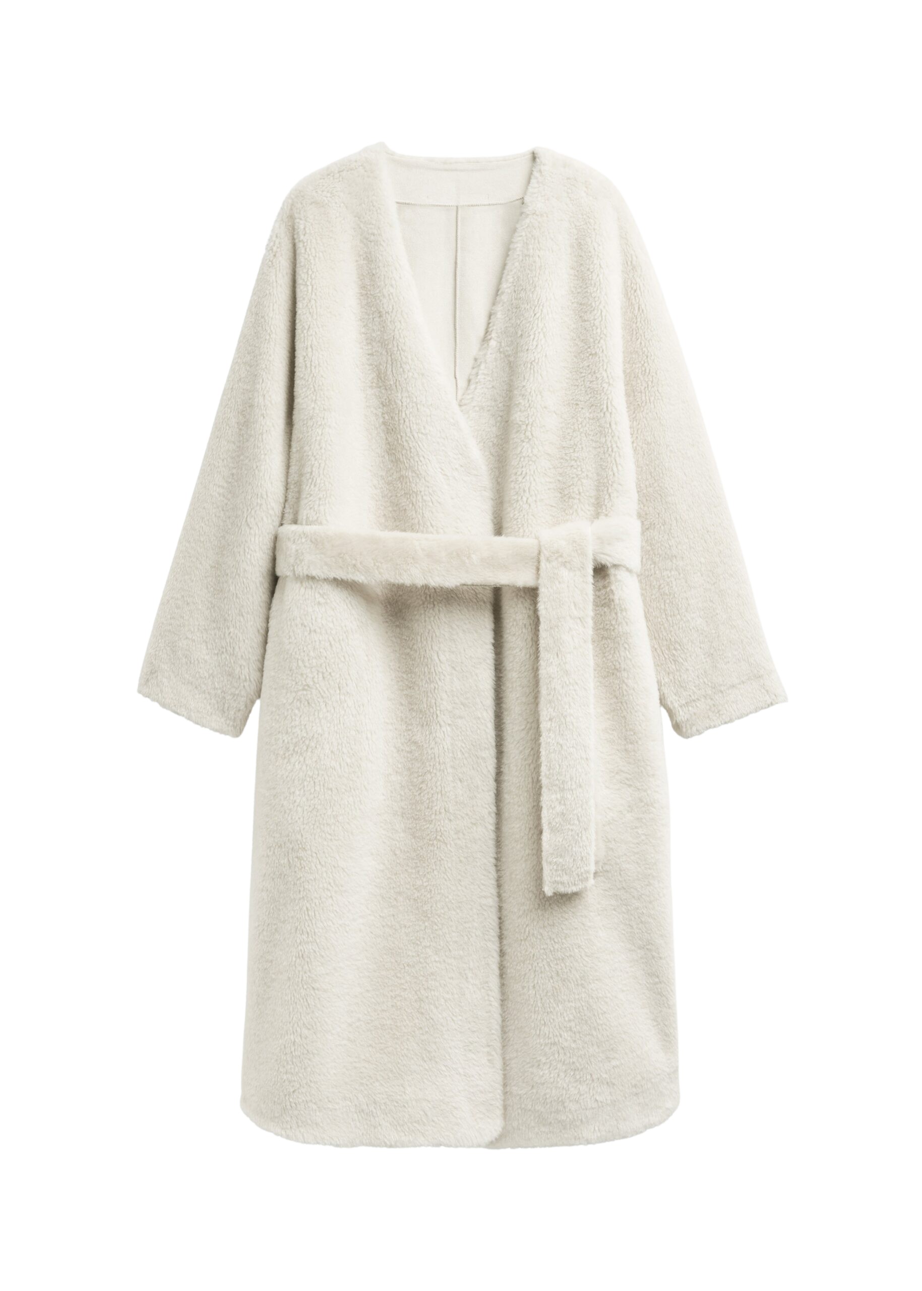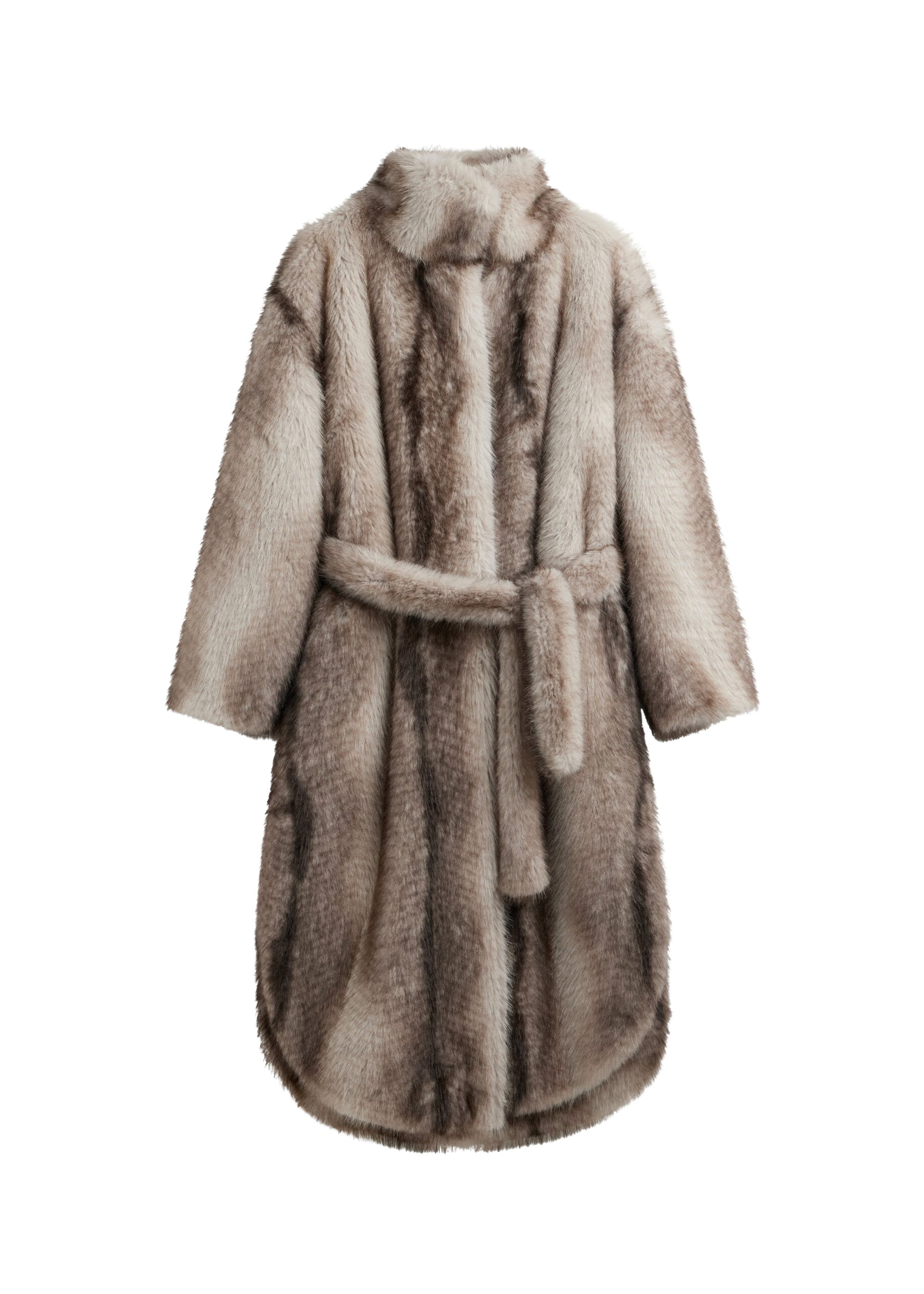Belted fur-effect coat in light brown
