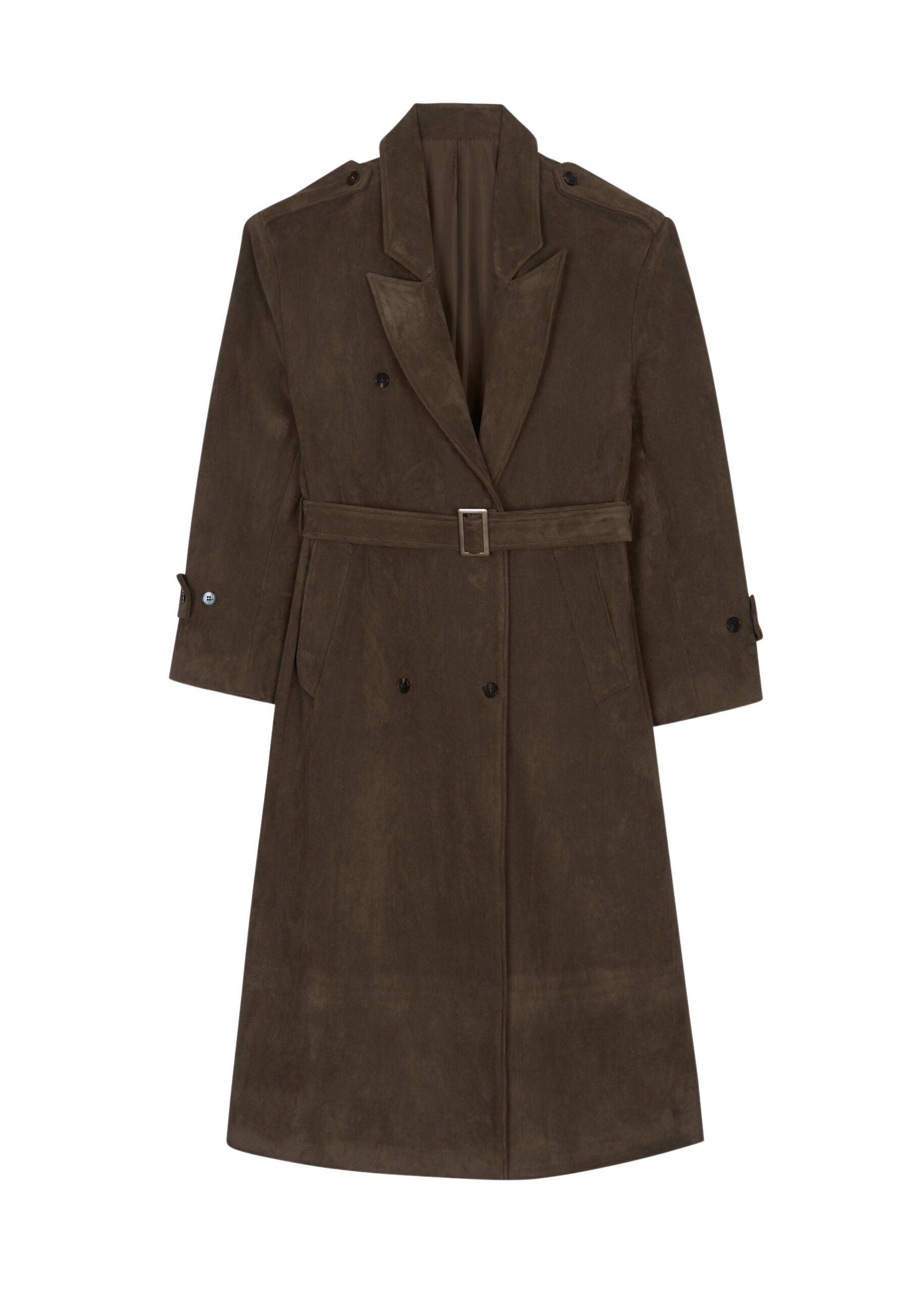 Peoria Faux Suede Trench Coat – Brown