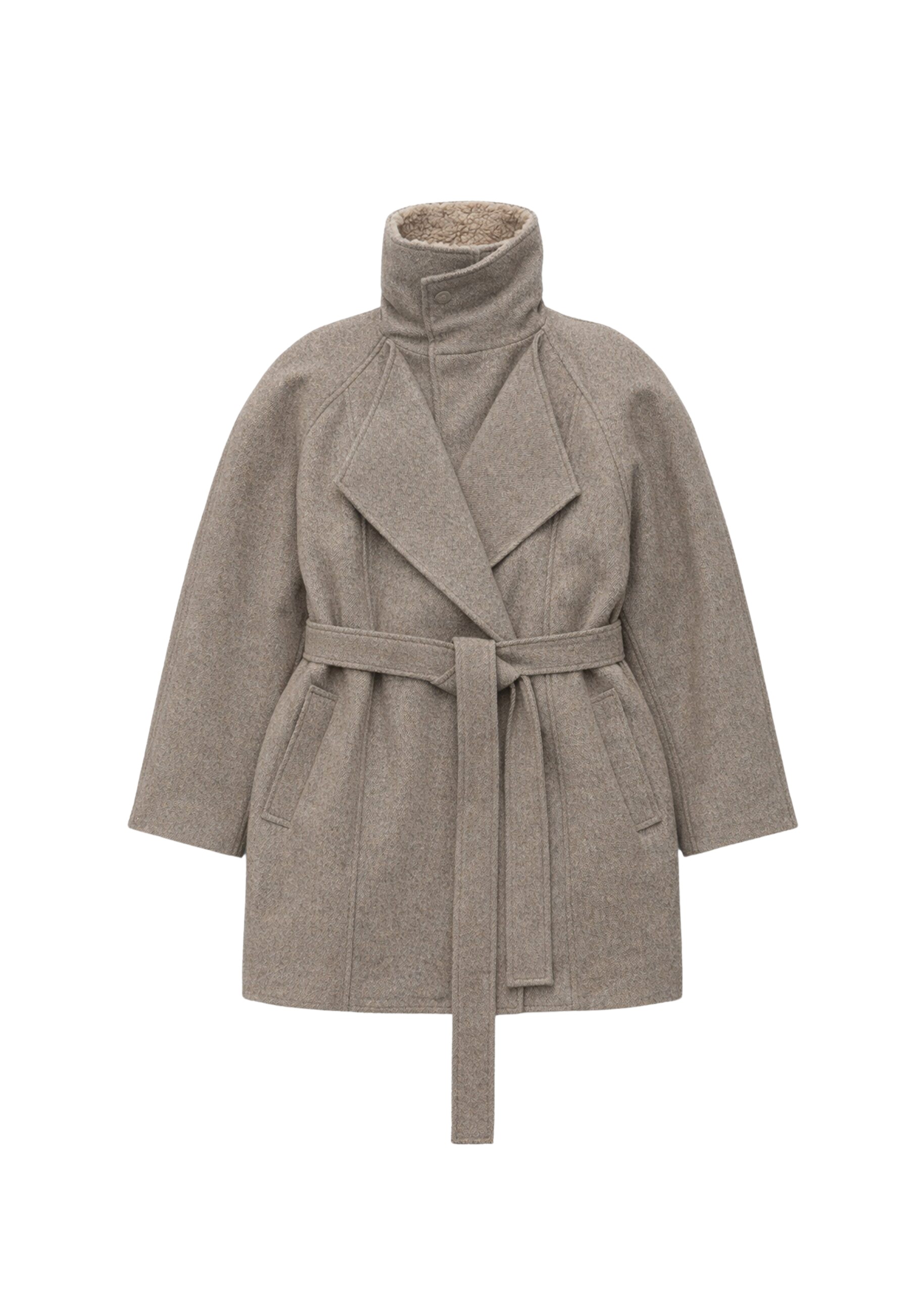 Leroy Funnel Neck Wool Coat – Taupe Melange